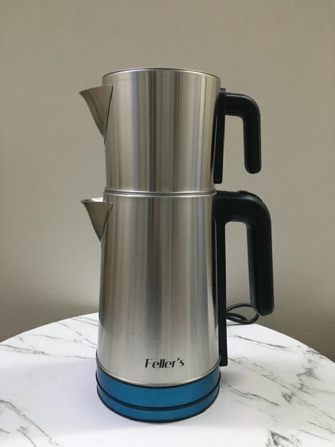 کتری استیل با ظرفیت ۲.۲ لیتر و قوری شیشهای ۰.۸ لیتری مجهز به صافی استیل، کیفیت ساخت بالا و مقاومت حرارتی مناسب را تضمین میکنند. وجود سیستم گرمنگهدار خودکار در دمای ۶۵ درجه باعث میشود چای همیشه گرم و آماده سرو باشد بدون اینکه طعم آن تغییر کند. طراحی دولایه بدنه، ایمنی و عایق حرارتی بهتری ایجاد کرده و از داغ شدن بیشازحد بدنه جلوگیری میکند.